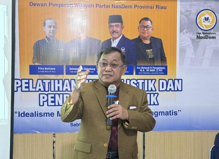 “Makanya, saya sangat mengapresiasi Nasdem Riau, yang menyelenggarakan acara ini,” kata Direktur Utama, Lembaga Pendidikan Wartawan, Pekanbaru Journalist Center (PJC) Drs.Wahyudi El Panggabean, M.H., MT.BNSP., C.PCT, Sabtu (27/9).